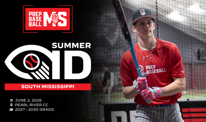 The Prep Baseball South Mississippi Summer ID is set June 2nd at Pearl River CC in Poplarville, MS. This event is open to Class of 2027-2030 prospects.