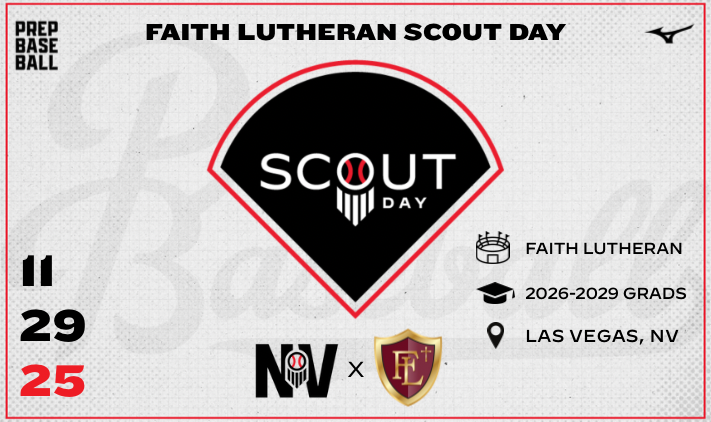 The Prep Baseball x Faith Lutheran Scout Day is set for November 29th at Faith Lutheran HS. This is an exclusive event for players of the Faith Luthern program to update metrics in their Prep Baseball Player Profiles heading into the Summer season.