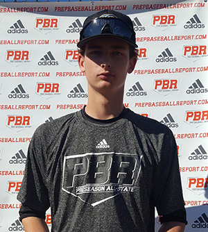 6-foot-1, 180-pound frame with present strength. Impressive sophomore prospect showed well in first PBR event. Hits from balanced, athletic setup with short stride and easy rhythm. Uses short hand load and fires lower half and hands at same time without great separation. Will likely show even more power with better sequencing. Made hard line drive contact to the middle of the field during his round of BP with very little effort/violence in swing; 90 mph exit velocity. Moves comfortably on defense, with a longer windup to get rid of the baseball; 81 mph infield velo with solid carry. Likely profiles best to 3B at the next level where his bat should play. Posted 7.34 60-yard dash. |