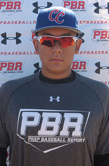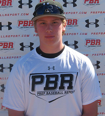 6-foot-3, 200 pounds. Bats right, throws left. Big, strong, raw athletic player who could move up in the 2018 rankings. Stands tall at the plate and has some good power potential. Toe-tap stride, hands load straight back, can wrap back back sometimes, but generates good power. Good extension through ball on firm front side. Could even get more of his lower back side rotated through swing. Generated a 91 mph exit velo off the tee. Needs to to work on footwork in the outfield. Throws uphill to from right to 3rd at 72 mph. Like his frame on the mound. Pretty smooth and effortless. Everything in-line towards the plate. Could generate more momentum towards plate. Looks like he stops arm a little before release which stalls arm action. Slows arm down a bit on curveball. Fastball was 74-76. Curve was 64-66. Ran a 7.07 60 time. Like his projectability.