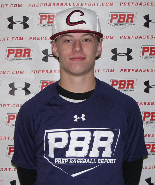 Currently ranked 36 in the 2016 class. 5-foot-11, 155-pound, right-handed hitting outfielder. Last time we saw Tanner he threw 85 mph at our Preseason All-State Event. 90 mph from right field. Throws were somewhat accurate but shows a very strong arm from right. At the plate he was consistent gap to gap with an 84 mph exit velocity off a pitcher. On the mound fastball was 84 mph with long/loose arm action, high ¾ arm slot with good command of both sides of the plate. Drops arm slot to more 3/4 on off speed pitches. Curveball was 72-73 mph with 10/6 gradual break.