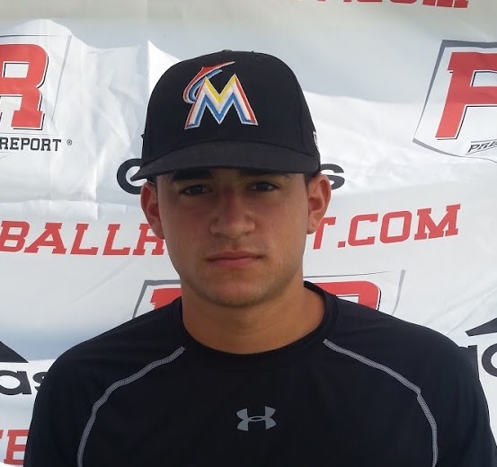 Elian Roman SS / RHP / Cypress Creek, FL / 2019Uncommitted. 5-foot-8, 160 pounds. He appears to be a bit taller and stockier. The lower half is strong and has a stocky frame. Defensively he shows above average actions. Works with rhythm to and through the ball, shows good lateral range and trusts his hands. Could improve foot speed, but angles and first step works. Also showed a strong arm, typing out at 88 mph. Offensively, he has a leg kick trigger and works with rhythm and in sync in his load. Stays balanced and uses the lower half well. Has loose hands and present bat speed. Had a hard hit single in the game and an 89 mph exit velocity. There are a lot of tools to like and that project well at the next level. |