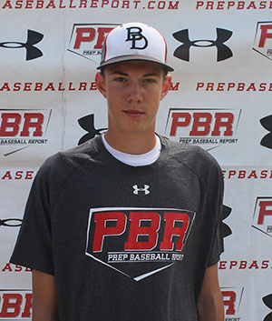 2.15.16 - 6-foot, 185-pound right-handed hitting 3B/RHP. Offensively hits from a balanced, narrow stance with a toe tap stride and average balance. Gap to gap hitter with a long, uphill path and fluid rhythm. Showed a fast bat. Showed strength thru contact with 86 mph exit velocity from a tee. Ran the 60 at 7.38. Defensively has a long arm action from a high ¾ slot. Athletic actions with fluid footwork and a quick exchange. Threw 77 mph across the infield. On the mound works form a high ¾ arm angle with a short, quick arm action. Tall and fall delivery with a closed toe landing and some rhythm. Repeats well. Feel for three pitches. Fastball sat 79-81 topping out at 82 mph for strikes. Curveball showed 11-5 shape at 65-66 mph. Changeup was firm with slight fading action at 73-75 mph.