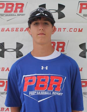 6.18.15 - 5-foot-11, 180-pound outfielder, carries some strength. Defensively attacks the baseball in the outfield, plays through aggressively with strong crowhop, feet work well. 7.05 runner in the 60. Long arm action, over the top slot, arm plays online with accuracy and carry, 83 mph from the outfield. Right-handed hitter, slightly open stance, short stride. Strong muscled swing, slightly rigid, good bat speed, pull side tendencies. 83 mph exit velocity from the tee.