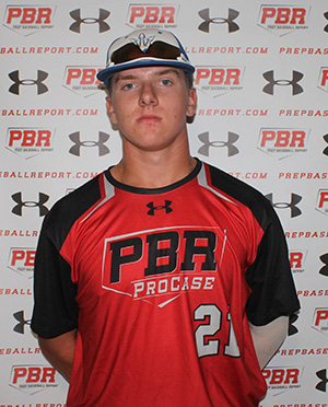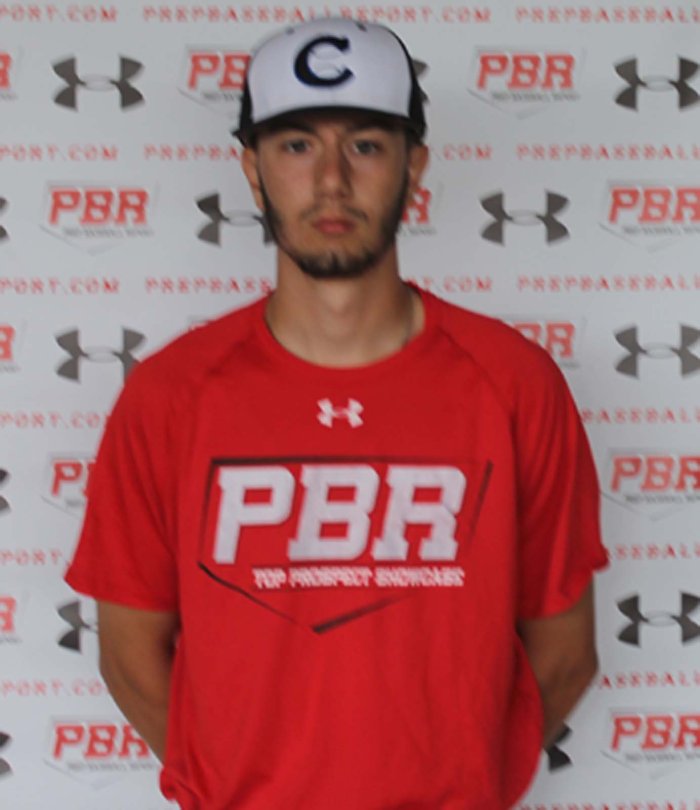 6.16.16 - 6-foot-2, 185-pound, infielder, strong, athletic build. Continues to show he is one of the top uncommitted right-handed hitters still available in the 2017 class. Offensively, flashed explosive bat speed and consistent loud, hard contact; registered a 100 mph exit velocity at the event. Present pull power and a long path through the zone. Narrow setup, slight leg-lift trigger and good balance. Defensively, profiles as a corner infielder. Soft hands, athletic fielding position out in front of body. Exchange gets long at times, makes up for it with above-average arm strength across the diamond; clocked at 85 mph. Long arm action from an over-the-top slot. 7.05 runner in the 60, laser-timed.