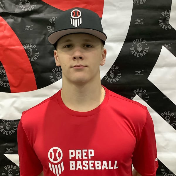 Aiden Corzine OF / Carroll High School, IN / 2026+ An unsigned senior, Corzine had a great showing with the bat at this event with clear college-level abilities shining. There is projection to the long-limbed, 6-foot-2, 175-pound frame that also includes impactful twitch. He set up with an open-stanced lower half and made a short stride to even while holding upper body angles with quiet hands into the launch. Peppering line drives from gap-to-gap, Corzine reached a 101-plus mph peak exit velocity while showing quick bat speed and control of the barrel head. To pair with a quality offensive showing, Corzine turned in a 6.90 60-yard dash to pair with an 80 mph OF arm.