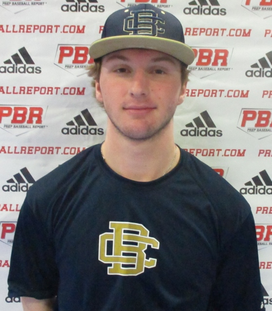 Gavin Rein 3B / OF / Olathe South, KS / 2020Rein is a lean 6-foot-2 165-pound right-handed hitting outfielder in Kansas’ 2020 class. He ran a 7.22 60 and has an 81 mph exit velocity. At the plate, starts wide and slightly open in base, minimal hand movement in load, loads weight against back side, short stride, level bat path with gap to gap line drives during hitting evaluations. In the outfield, 78 mph positional velocity, high three quarters arm slot, clean exchange, aggressive to the ball, plays through the catch, quick release after catch. |