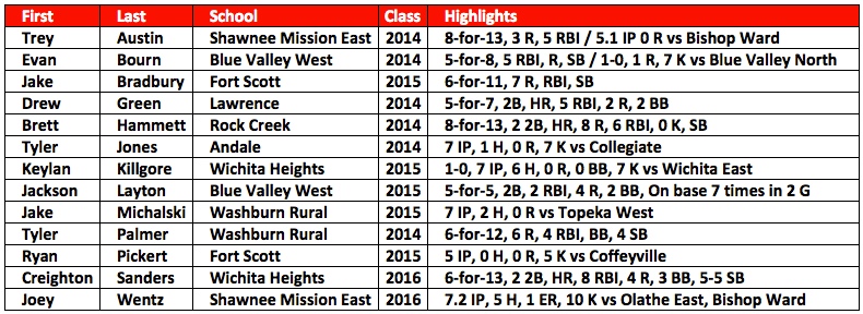 We tried to fit all of that in the “Highlights” section in the “Other top performers from Week 7” box below but couldn’t – combine that with the fact those numbers are amazing - and Zach Linquist is the Prep Baseball Report Kansas High School Player of the Week.