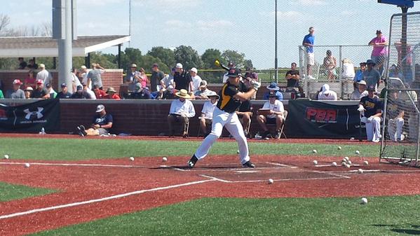 + Ryan Steckline used a level bat pat to get up to 83 mph in exit velocity. The lefty hitter filled the right field gap and is another two way prospect to watch out for in Game 2 with his projectable 6-foot-4 220-pound frame and interesting arm action.