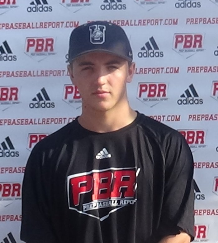 Will Behm 1B / 3B / Dulaney, MD / 2019Athletic, solid body type and 5-foot-9, 180 pound frame. Hits from a balanced, athletic, square stance at the plate. Quick, short stride and compact swing. Strong lower half involvement and stays behind the ball well. Gets uphill through contact showing some bat speed. Short, level swing path with an exit velo of 78 mph. Gap-to-gap line drives type hitter with occasional pop. Was 1-for-2 in the game. Plays with active feet and works through the ball at first base. Showed quick footwork around the bag and soft hands. Short arm action throwing from a low three-quarter slot. |