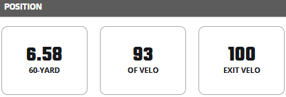 Picot also produced impressive numbers with a 6.58 run in the 60, third best overall, while hitting 100 exit and 93 outfield velo.