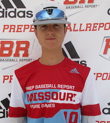 Missouri pitchers turned in a solid performance lead off my Teague Robertson (Hickman). The lean and loose righty worked his fastball consistently at 82-83 mph, spotting it up for a strike with arm side run. He worked a sharp and late breaking ball at 68-71 mph, a pitch with swing and miss potential down the road. Robertson also kept hitters off balance with a knuckleball at 69-70 mph. He threw all pitches for a strike and looks to add more velo down the road to his tall and long frame. He has command of three pitches with loose arm action that will only get better over time. Troy Reynolds (Lebanon) had the top max fastball velo of the Missouri pitching staff at 89 mph. He has a strong frame with an over the top arm slot. He touched 88 mph on several occasions and sat 86-88 mph for most of his two innings of work. He showed a breaking ball at 74-77 mph with late bite and 11-to-5 action.