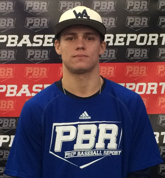 Physically mature body at 6-foot-1, 200 pounds. Works with ease in the box and around the bag. Left handed hitter begins open with a tall posture. Short stride, dives toward the plate. Barrel begins flat, loading to a vertical position. Good approach has some uphill leverage. Tends to be pull oriented. Some barrel awareness. Fluid and easy demeanor. At 1B, has soft hands and fluid footwork. Easy exchanges on throws to 2B. Short arm action is repeat-able working to a high-3/4 slot. Ran a 4.15 thirty and tested the standing broad jump at 7-foot-6.