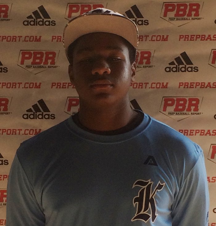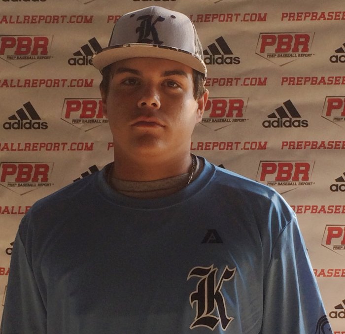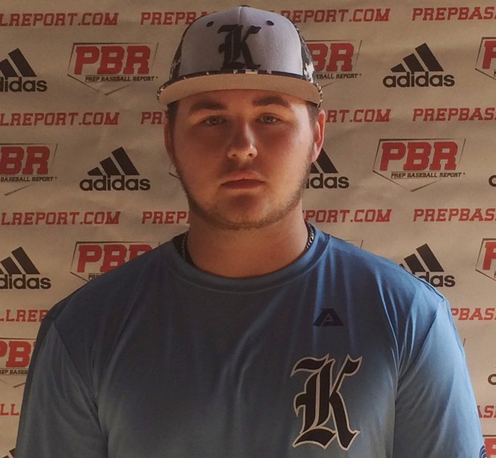Dakota Locklear RHP / 1B / Purnell Swett, NC / 2018Strength in the barrel, with an exit velocity of 90 mph from the right handed hitter. Open stance, loads back with a long aggressive stride. Aggressive swings, producing a quick bat. Wants extension, showing power, working to the pull side extensively. Loose and showed a feel for the barrel. On the infield, average hands worked to funnel to the midsection. Feet can quicken. Clean exchanges to a long arm swing and high-¾ slot. Arm topped at 77 mph. Tends to play high on most ground balls, lacking some bend. Sixty clocked at 7.59