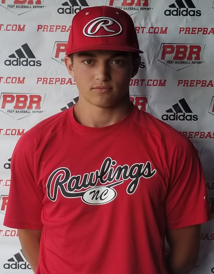 Tucker Jackson OF / RHP / Apex, NC / 2018Strength and quickness is present in the right-handed hitter. Ran a 7.12 sixty and flashed an exit velocity of 89 off the barrel. Athletic setup, slightly open, uses a short stride while the bat loads to a lagged position. At times rushed through his load, the swing can get long. When on time, the swing is flat through the zone, working the middle of the field. In the outfield, the feet work with rhythm through the ball. Clean exchanges can get long as the feet work to set the arm. Long arm swing to an over-the-top slot producing a positional velocity of 83 mph. Showed advanced accuracy and some carry from a quick arm.