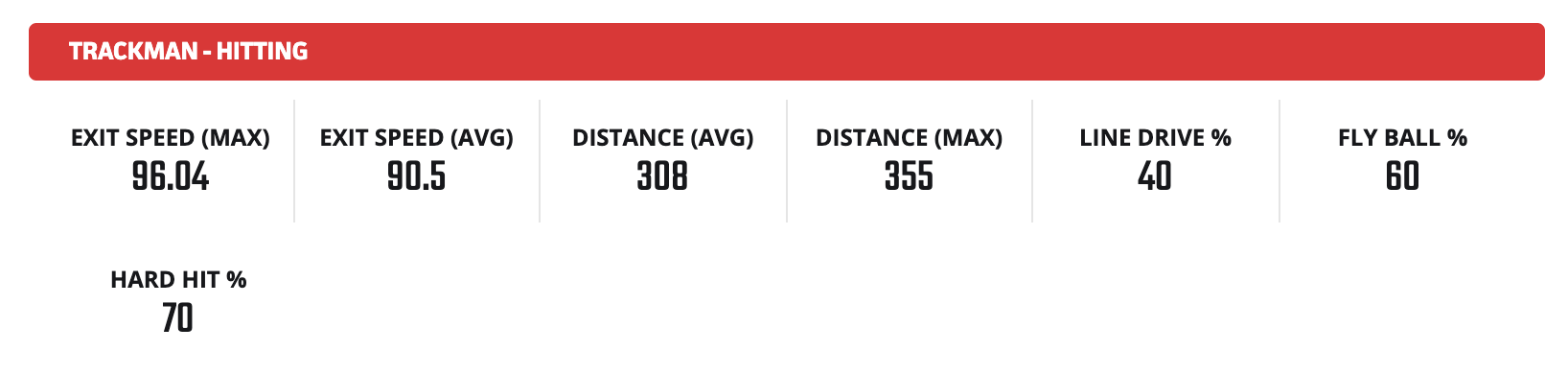 Welcome to the hitting side of Trackman Traits! We have covered the pitching side of the numbers produced by Trackman, now we will take a bit of a dive into the hitting numbers and break down some of the best uncommitted bats from the Garden State. Beyond looking at the Trackman metrics, or result based metrics, we will be highlighting a few Blast Motion metrics to get a better look into how that player's swing is able to produce the results that is does. Today we will be looking at a 2023 CIF out of Cranford, the Georgia Tech commit, Ryan Jaros.