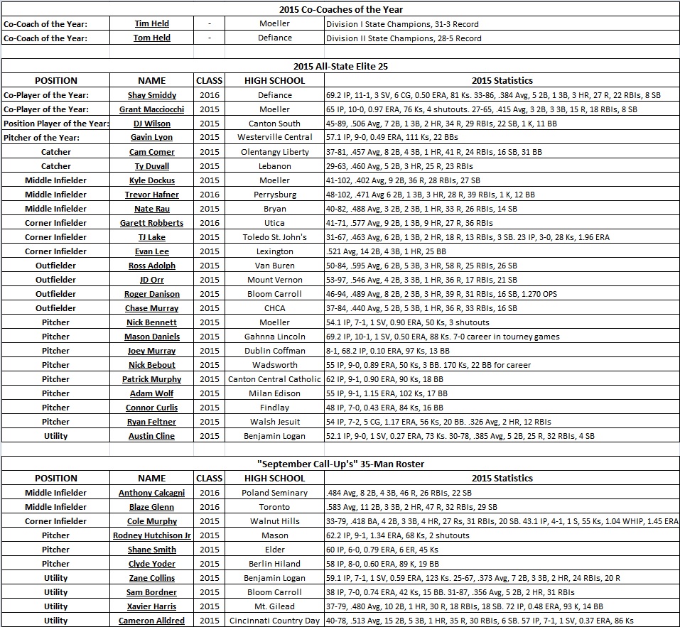 Below we at PBR Ohio look to bring to you our first-time All-State selections, including the 2015 All-State Elite 25, which is the "Top 25 players of the 2015 season, with some September call-ups".