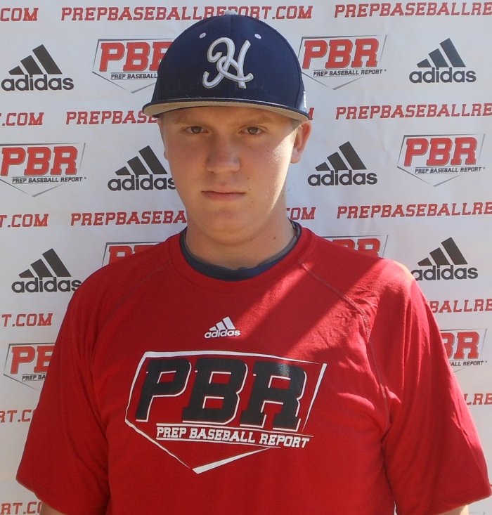 Caleb Kalcich RHP / 1B / Heritage Hall , OK / 2022A physically advanced 6-foot, 215-pound frame with strength. Offensively, the right-handed hitter bats from a wide and upright stance with rhythm in his hands. Uses a quick knee-knock load before launching his hands on a slightly uphill path through extension with some length. In BP, shows a mostly flat, opposite field approach with occasional lift, mostly barrels, exit velo of 82 mph. Runs a 8.77 60. Defensively, shows deliberate and mostly clean actions around the bag, throws with accuracy to second base, 65 mph. On the mound, the right-hander works from an up-tempo delivery with rhythm and a moderate leg kick before gliding down the mound. Arm action is short in the back with a quick change of direction before coming through an over the top slot with some arm speed. Fastball ranged 71-75 mph, mostly strikes. Curveball has rolling action with 11/5 shape 55-58 mph. Changeup is still developing at 51-55 mph with some fade. |