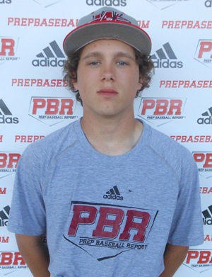 Dakota Ward SS / RHP / Yukon , OK / 2019A 6-foot-1, 165-pound lean frame with some room to add size and strength. Offensively, the right-handed batter hits from a balanced, athletic set-up with rhythm throughout. Uses an early stride with a late heel plant for timing, some length in the bat path. In BP, showed a mostly middle of the field approach with some lift, some pull pop, and some barrels, 83 mph exit velo. Runs a 7.56 60. Defensively, shows above average hands and feet, shows athleticism on the slow roller play, throws from multiple slots with a quick release, 75 mph across the diamond with accuracy. In the game, went 2-for-3 with a double, single, and a strikeout. |