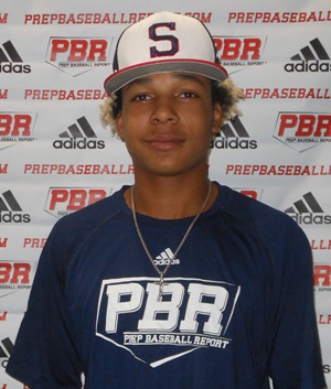Mack Chambers III SS / Broken Arrow, OK / 2018The Seminole State commit has a 5-foot-11, 165-pound lean and athletic frame with some strength and room to put on more size. Offensively, a proficient switch hitter, showed similar stances from both sides with a back leg heavy, slightly knock-kneed set-up with some rhythm in his hands. From both side, Chambers uses a moderate leg lift, a short path path to contact, and a high finish. In BP, shows a middle to pull approach from both sides with pull pop especially from the right side where he barreled almost every ball. More pop than his exit velo of 83 mph would suggest. Runs a 6.89 laser timed 60. Defensively, shows high end, smooth, athletic, and confident actions with soft hands and solid footwork. Throws from multiple slot with accuracy, putting every throw on the bag, 82 mph across the diamond. |