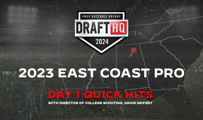 The Director of College Scouting at Prep Baseball Report and D1Baseball.com, David Seifert, helped ignite our 2024 MLB Draft coverage by traveling to Hoover, Ala., to take in this year's East Coast Pro event, which precedes the Area Code Games out west where our own Shooter Hunt is stationed currently, witnessing the underclass portion of the event. Seifert will be breaking down the top takeaways from each day of ECP, beginning with the Day One coverage you'll find below...