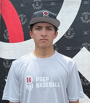 From 7/30/25: "Positional Profile: 3B/RHP RHH/INF with solid build/frame to add strength. Plus runner, moves well on baseball field, athletic. Projects as solid infielder in future, actions developing. Project solid bat/power combo in future. Tools present, developing player with upside. Body: 5-10, 192-pounds. Good build/frame. Has width to shoulders and back. Shows some strength. Will keep adding strength with growth and maturity. Good physical projections. Hit: RHH. Lands in good position to hit after stride. Back foot shows rotation, gets stuck, work to get back foot fully turned, shoelaces towards pitcher. Back foot slides away from home limiting use of lower 1/2. Drive foot forward towards mound into firm front side. Stay into balls of feet, falls back at times after swing, keep feet into ground. Hands/barrel in solid launch position. Take hands/knob barrel on direct path to baseball. Presently, barrel works down and around. Work to keep top hand above bottom hand in swing. 75.9 mph bat speed with 12 G's of rotational acceleration. Power: 100 max exit velocity, averaged 92.3 mph. 354' max distance. Solid bat/power combo with upside. Like the power potential. Adjustments with both hit approach and swing will result in more contact consistency and impact. Arm: RH. INF-80 mph. Arm works fine, arm works better with throws on the move when forced to be athletic. Balls hit right at…short stroke with hands starting away from body with lower slot. Defense: Moves fine to baseball, work to play thru baseball with feet moving towards 1st. Quickness to feet present, looks tentative moving to baseball currently. Fields ball deep, glove late getting down. Work to keep palm of glove facing baseball as soon as possible, field ball out front, playing thru baseball with feet. Chance to develop into abv avg HS infielder. ATH: 6.63 runner in the 60. 1.67 and 3.79 in the 10 and 30 yard splits. Quick start. Plus speed with nice strides. Threat on the basepaths. 24.60 max vertical."