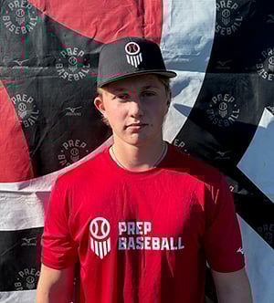From 8/2/25: "Positional Profile: 2B/SS LHH/INF with nice build/frame to add strength. Will be solid infielder with actions developing, will have versatility on the infield. Solid bat/power combo in future with adjustments. Developing player, will fun to watch develop. Body: 5-10, 164-pounds. Solid build/frame. Width to shoulders and back. Will add strength to frame in the future with growth and maturity. Nice physical projections. Hit: LHH. Lower 1/2 show incomplete movements with lower 1/2. Linear movement forward works well with stride, work to get foot fully turned and rotated while driving forward with linear movement. Stride foot rolls onto side of foot, work to keep foot into ground thru completion of swing allowing lower 1/2 to work. Barre/hands start in good position, late wrist cock creates barrel tip and length to swing. Work to soften wrist cock looking to keep barrel behind head allowing for more direct path to hit with hands/barrel. Swing works. 64.2 mph bat speed with 7 G's of rotational acceleration. Power: 94 max exit velocity, averaged 83.6 mph. 362' max distance. Project solid/power combo in future with adjustments to hit approach and swing. Contact consistency and ability to impact baseball will firm with changes. Great base to work from. Arm: RH. INF-79 mph. Shows avg HS raw arm strength now. Work to firm ability to throw from all angles when on the move. Develop long toss program to increase arm speed and raw arm strength. Defense: Feet work getting to baseball, break down well to field, plays thru baseball. Hands work, can firm fielding baseball out front. Solid actions. ATH: 7.67 runner in the 60. 1.82 in the 10 yard split. Upright runner, work to keep a slight forward tilt with head. Has good action in arm swing. Solid runner. 20.00 max vertical."