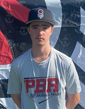 From 8/17/25: "Positional Profile: SS/OF RHH/INF with good build/frame. Plus runner with a quick start. Arm works well has some arm speed and carry to throws. Fluid actions in the field, under controlled. Shows some range. Has good bat speed with quick hands. Gets hands through zone quick with a solid barrel path. Stay connected to ground with front foot. With adjustments will firm up impact ability. Nice swing to watch. Body: 6-1, 173 pounds. Good build/frame. Lean, width to shoulders and back. Solid base, flashing some strength. Good physical projections. Hit: RHH. Short leg lift with small stride. Rolls to side of foot, stay connected with ground, will help firm up front side. Linear movement in back foot, drive back foot towards pitcher. Quick hands. Hands /barrel start in a solid nice position. Good bat speed present paired with quick hands. Pull gap approach. Gets hands through the zone quick. Solid path through the zone. 70.5 mph bat speed with 15g of rotational acceleration. Power: 99 mph max exit velocity (84.1 avg.); 310-foot max batted distance. Solid bat/power combo. With adjustments to swing and approach can firm up ability to impact the ball. Arm: RH. INF - 83 mph. Has a clean arm action. Arm speed with carry. Arm works well. Can throw from different arm angles. Defense: Fluid actions. Smooth and under control. Fields ball out front well. Footwork is sound. Shows some range. Athletic Testing: 6.76 runner in the 60-yard dash; 30.50-inch max vertical jump. Quick start, solid forward lean. Good length to strides. Plus runner."
