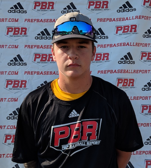 Jonathan Wall 3B / RHP / Ocean Lakes, VA / 2020Wall is 5-10 with a stronger athletic frame that has some projection left to it. He hits from the right side from an open upright stance, strides on line, short load back with slight wrap, hips rotate completely with violence, and he maintains good balance during his swing, has some rhythm. Short to ball, showed good approach working gap to gap, uphill line drive swing, strength at contact with extension through the ball, exit velocity was 86. At third base, gets body behind ball and fields with average hands. Works through ball to a clean exchange. Throws from a three-quarters arm slot, position velocity was 78. |