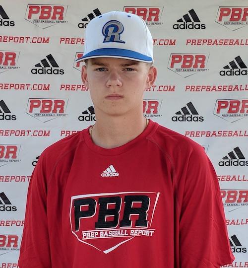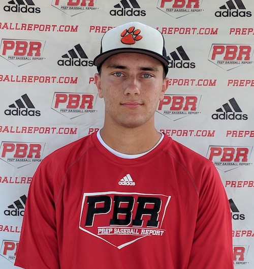 Alex Rebello RHP / 3B / Tuscarora, VA / 2019Rebello is 6-0 with an athletic frame. He throws from a high three-quarters arm slot with short loose arm action and some effort. Shoulders uphill and closed, lands slightly closed with a bit of a fall off finish. Fastball was 73-75 with some downhill plane and late cut. Curveball was 63-65 with depth and 11/5 break and good armspeed. Showed a change-up during warm-ups with some armspeed and some sink. |