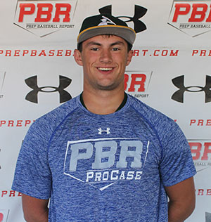 2016 Super 60 - Louisville recruit. 6-foot-1, 205-pound frame, physical build, wide shoulders, developed lower half, strong forearms and hands. All-around strong showing at Super 60. Advanced defensive third baseman, soft, reliable hands, ranges well laterally, fundamental footwork. Strong, accurate arm, 88 mph across the infield; arm action is short and athletic, quick release, minimal effort involved. Offensively, hits from balanced setup, mechanically quiet, short stride, smooth load, short, level path, allows ball to travel deep, above-average bat speed, stays strong through the ball. Consistent line drives, gap-to-gap approach, works the middle of the field well, aggressive lower half, maintains balance through finish. Moves well for size, ran a 6.91 laser-timed 60.