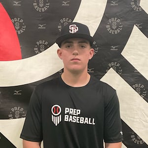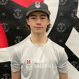 From 7/31/25: “One of the top players in the state with a two-way ceiling standing at 6-foot, 170-pound frame. At the plate the right-handed hitter swings a smooth and strong bat with feel for the barrel maxing out at 93.8 mph throughout his round while also earning MVP honors going 5-foot-6 with a home run. Showed a three pitch mix on the mound with an upper-70s fastball topping out at 80.7 mph while showing two breaking balls in the upper-60s.” |