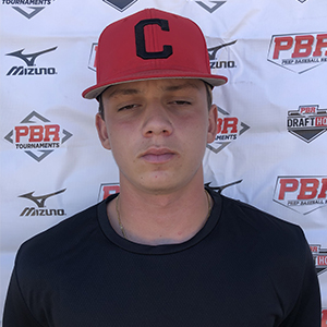 5-foot-10, 155-pound proportional frame. In the 60-yard dash, he clocked a time of 7.49. Starts in an open stance with a compact load, then uses a controlled stride just before his swing. Has simple swing plane, efficient bat speed and good extension on his finish. He barreled up multiple balls with loud contact. Gap to gap approach. the right-handed hitter clocked an exit velocity of 83 mph. In the infield, displayed a velocity of 74 mph; shows smooth feet, firm soft hands and a clean exchange. Had a short arm action and an-over-the-top slot with consistent accuracy to the base. Does a nice job hitting balls hard to all fields.