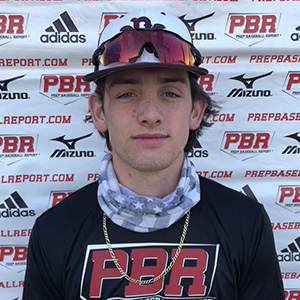 5/20/18 - 5-foot-9, 140-pound frame. Posted solid 7.32 60-yard dash for young 2021 prospect. Hits from balanced setup with low hands, starting his gather very late before short, quick stride. Slight uphill bat path; 66 mph exit velocity. Fielded ball with two hands in the outfield, stopping feet and breaking momentum, could improve outfield actions and throws by working more through the baseball and fielding with only his glove hand. Posted 69 mph outfield velocity and best pop time of 2.28 with 67 mph velo from the crouch.