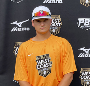 2022 OF/C Caden Thiele (Desert Vista)- 6-foot-1, 185-pounds, large strong bodied frame, has leaned out a bit since we last saw him at an event in June, powerful overall actions. Strong squared base, upright torso, sequenced load (barrel up/ leg up), connected to start downswing. Maintains back leg into front foot strike. Looks to hit the ball in the air with high attack angles, shows some present power & bat speed. Accelerates on plane quickly with loose hands. Pullside approach with power to LF, consistent hard contact, 100.40mph exit velocity, hit several balls out in BP over 360ft. Versatile defender with strong arm, 86mph from OF. Uses clean footwork with usable glove, average quickness. Some stiffness in stance behind the plate, short arm behind, coming out of crouch slightly early, 1.95-2.12 pop times at 74mph arm strength. Strong follow.