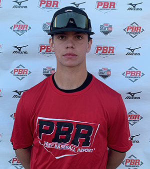 Good frame with strength throughout. Strength in lower half and hands. Powerful actions. 7.14 runner in the 60. Projects well on the corners. (Hitting) Max EV 98.8 mph. Max Dist. 363 feet. One of the top statistical leaders offensively at this event. Above average strength and bat speed for age. Bat gets through the zone well. Simple set up in the box, shoulder width base with a slight bend in the knees. Hands held at the chest with a vertical bat. Gap-to-gap power is developing. Creates some natural loft with the swing, has the ability to drive balls deep to center/pull side. (IF) 77 mph IF velo. Profiles well as a 3B with size and arm strength. Glove work and footwork is still developing, seen improvements within the last year. Understands body positioning on various ground balls, keeping the feet moving will increase glove skills and ability to read hops. Has the ability to throw from different slots, arm plays from left side.
