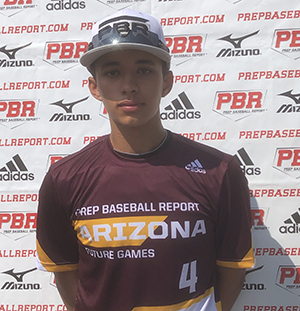 10/14/18 - 5-foot-10, 145-pound frame. Arias looks like one of the top prospects in AZ's 2022 class. With a projectable, high-waisted body, Arias looks the part as an infielder and also on the mound. Offensively Arias shows an advanced rhythm, getting started early with a balanced, knee-knock trigger and projects to develop power as he matures physically. Defensively, has the look of a future 3B, generating impressive carry on his throws across the diamond. Foot speed has improved since we last saw him and appears to be the type that will continue to get faster as he gets stronger. Arias is even more advanced on the mound, where he sat 80-81 mph with an under control delivery and very clean arm circle from a 3/4 slot. Arias flashed a true curveball with tight rotation and 11-5 break when at it's best. He also mixed is a very short slider, with more cutter-type break. May benefit from being shelved in favor of a changeup that will give him a weapon against LHH as he matures. Future position will depend on continued development of run tool (7.57), which has come down significantly since we saw him in the spring.
