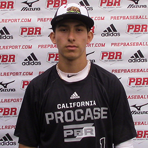 San Diego commit. Medium frame with strength in the lower half. Sets up in a deep crouch with backside well below his knees, almost on his ankles. At times this causes him trouble when popping up after a ball-in-dirt. Provides a good target with a straight back and shoulders pushed back. Shows soft hands and the ability to frame pitches without giving away location. Arm is strong with throws consistently on the bag in the 1.93 - 2.1 range. Shows some bat speed at the plate with feel for the barrel. Very good understanding of the strike zone - didn't chase bad pitches.