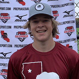 Defense: 2.15-2.20 pop times. Showed some of the better footwork for C’s at this event. Quickly set up feet for throws. Also showed solid receiving and blocking skills during the bullpen session. Soft sure hands and consistent in the pocket.