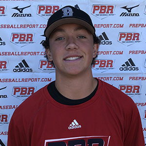 PBR N CA Preseason All-State - Full, medium frame showing sloping shoulders and strength in his chest. Average stride length with cross-body arm action (7.68 60-yd). Tall stance keeping hands with from back shoulder; quick weight transfer with hands jumping at the baseball. Direct swing with short upward path; strong lower half usage hitting over stiff front leg driving balls over middle infielders (83 exit velo). Wide feet playing outside his shoulders; stays low to ground and works through the ball. Compact arm gets to high release point with growing arm strength (74 MPH).