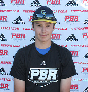 5-10, 160 compact frame with added strength in chest and arms; still young and projectable frame. Balanced stance with high back elbow keeping hands just below back shoulder; quick load over back foot with quiet front side allowing hands to start to turn barrel behind him. Barrel turn allows hands to get on plane early working upwards through the zone; when he keeps the front shoulder on the baseball there better direction through the ball and ability to allow bat speed to play. Quick turns produce higher carry gap-to-gap and flashed consistent hard contact (86 EV). Utilizes his lower half staying connected to the ground as he moved through the baseball; arm is slingy from mid-3/4 slot allowing arm to produce low trajectory throws with bits of run to the bases (81 OF).