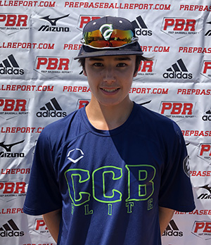 CCB World Series - long medium frame having more strength in his lower half. Compact 3/4 arm out with elbow showing clean swing and high front knee tuck; needs to work to control his hips more consistently down the mound, times where he gets over-rotational instead of driving down the mound. FB 75-79 life at the plate moving it to arm and gloveside flashing cut. Needs to control pitch better for long-term success. SLD 61-63 short with late tilt; ability to bend hitters and pitch projects well. Velo held over back to back days and has a future on the mound with continued focus.
