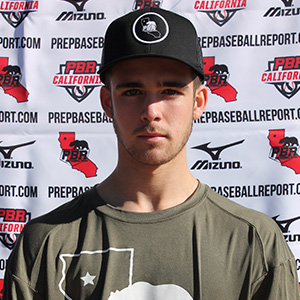 Hit: RHH. Open stance, very high hands. Early into back hip lean as hands work down a bit. Hits behind front side well and can firm it up. Steeper path, handsy swing. When he stayed connected ball had ability to carry better through middle of the field.