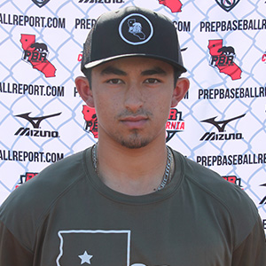 Top Prospect ID - Medium frame, high waist and length in the lower half showing some good young strength; chance to add weight in the near future which will improve athletic ability (7.55 60yd). Slightly opened stance with high-even hands at the plate; sits into lower half keeping weight between his legs for consistent, balanced stride. Swing has smooth rearward barrel turn working on slightly upwards path (77 EV); found ability to backspin the ball through the middle of the diamond and pullside with swing projecting more extra-base power. Behind the dish the lateral agility was present and consistent showing a firm chest when blocking balls. The glove arm worked back towards the zone with all types of pitches presenting a strong target. Pop will improve with improved quickness in the footwork (2.23-2.39 Pop); Arm has a high release (72 MPH) with ability to keep ball around the bag.