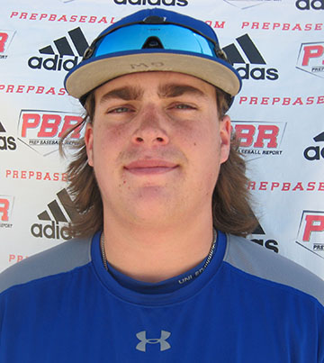 A 5-foot-11, 190-pound switch hitting catcher/3B who ran an 8.44 60. From the left side he stands balanced with a long stride and quick load. Hands whip through the zone with a strong weight transfer. Swing path is uphill and exit velocity was 75 mph. From the right side he is open with a big leg kick to come square. Swing path is uphill with an 81 mph exit velocity. Behind the plate is showed smooth actions while blocking balls. Arm is short and over the top. Arm played at 69 mph with a 2.16-2.20 pop-time. At third base he showed good feet and a quick glove to hand transfer. Moves well to the line. Arm is short and from a high ¾ slot. Arm was 71 mph across the field.