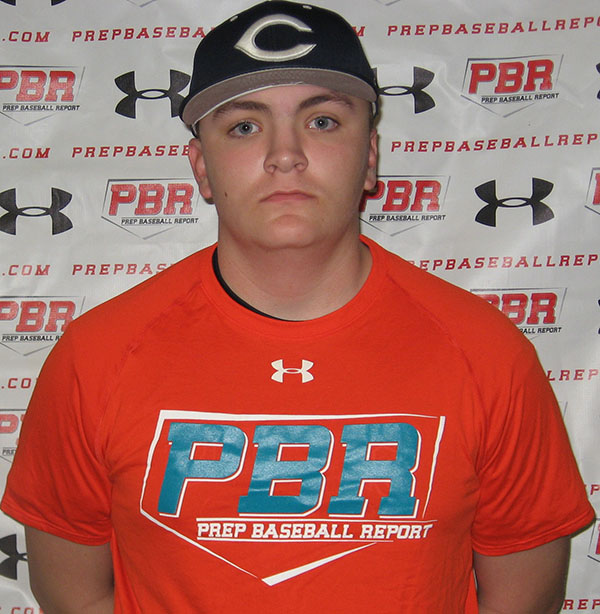 A 6-foot-1, 200-pound left hand hitting 1B/3B. At the plate he stands slightly open with a long stride to come square. Lower half is solid and drives through the zone creating good pull side power. Swing is quick with great extension out front. Exit velocity was 92 MPH.