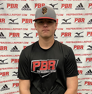 Uncommitted. 6-foo-1, 185 pounds. Athletic build. At plate has wide stance, short stride. Loads down, and dives towards baseball at contact. Swing path is slightly uphill. Opposite field approach. Produced a 83 mph exit velocity off a tee. At 1B fields ball out in front with soft hands, and throws from low short arm slot. Arm velocity was 61 mph across diamond. Ran a 4.98 simulated home to first.