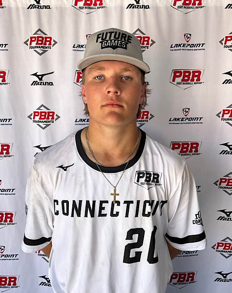 Bobby Herzman: 1B/RHP, (2025) HC Wilcox, CT. 6-foot, 231-pound sturdy strong build. Projectable and solid during batting practice, Herzman's best exit velocity was 86 mph. (62.92 mph bat speed average). (19.19 mph hand speed average). Started in a balanced quiet stance with a small load, then used a short stride. Bat speed is developing and quick, exhibits an uphill loose swing plane and high finish. Found multiple barrels with loud contact. Gap to gap approach. Capable projectable in the infield, his position velocity was registered at 67 mph; had soft developing hands, a clean exchange, and consistent developing footwork. Fields the ball out front, movements laterally were developing. Showed consistent accuracy to the base with a high ¾ slot and a consistent arm action. In the 60-yard dash, he clocked a time of 8.89. Projectable on the mound, shows developing arm speed, he had a high ¾ arm angle with a loose arm action. Feel up-tempo type pitcher who shows some effort. Has an athletic balance point and in line shoulders. Lands square with a clean finish. Produced a fastball that came in at 70-72 mph; had arm side command and slight running action. (Max spin 1728; Avg 1530). His curveball (63-66) had sweeping action and glove side around the zone command. (Max spin 1603; Avg 1344).