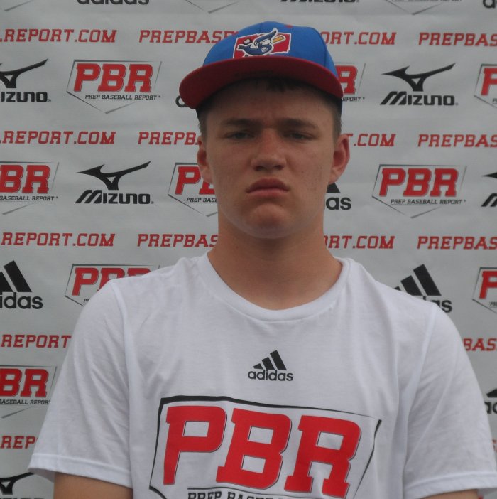 6-foot, 175-pound, wide, thick, athletic frame. The back is wide, has room to fill out with added weight. A right-handed hitting outfielder, looks to drive the baseball from the middle of the field to pull side. The setup is even based, with hands being loose, bat starts in a flat position on the back shoulder. The swing is flat through the zone, barrel stays in there, approach is more line drive. The tee exit velocity was clocked at 85 mph, had hard solid contact in batting practice. Defensively, routes and angles are under control, fields out front and uses more of a shuffle for the transfer. The arm action is long and clean, works out of a high ¾ slot. The arm was clocked at 78 mph, downhill flight, on target. Worked off the mound as well, arm is clean and quick on the back side, fastball 77-79 mph, with down action to it. The breaking ball was clocked at 66-68 mph, with more of a slurve break to it. The delivery is simple the hands start high, stay high, athletic leg raise and direction of lead leg is inline. The backside lower half could come through more on follow through, will help with velocity and will take pressure off the arm. Projects out for me as more of a corner outfielder, potential to hit with power at some point.