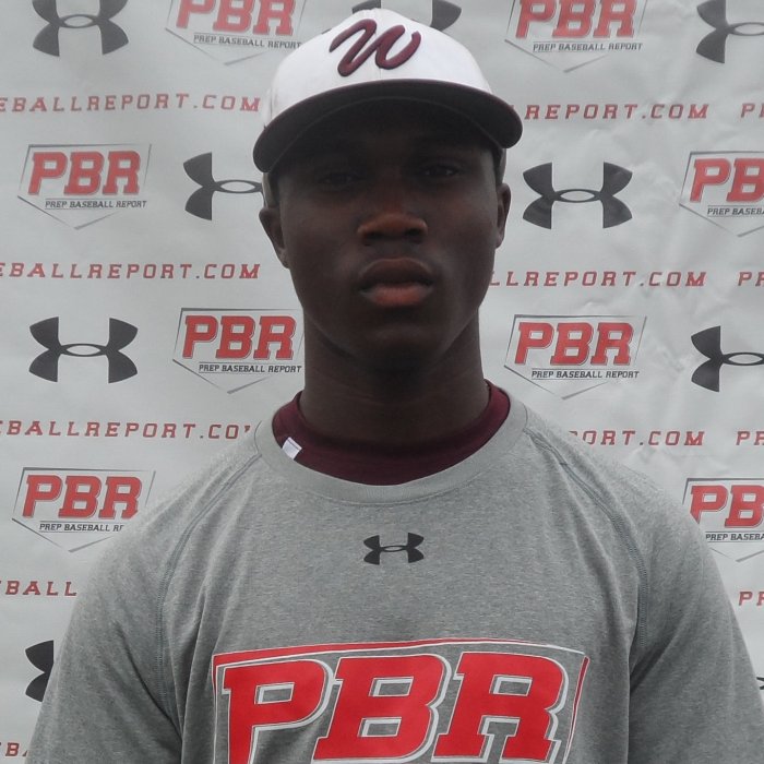 Chambers a left-handed hitting, outfielder, hits from an even base, has a little leg, hands work are free, gets a little rotational at times. The tee exit velocity was 80, had good swings in game, hit two balls hard for outs. Time from home to first was 4.79, ran the bases hard. Showed very well in the outfield, arm strength was 79, had proper footwork with an easy transfer, arm had good carry and easy life to it. Off the mound fastball was 73-76, threw a ton of strikes. Arm is clean and works out of a ¾ slot. The curveball was 62-67, change was 68-69 with good feel for it, was able to throw it to right-handed hitters. Chambers can do multiple things will be good for someone.